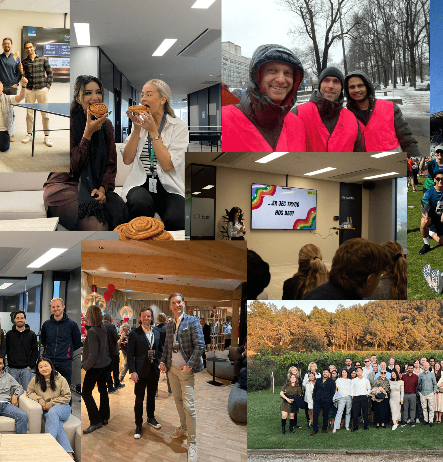 I Fair tror vi på at gode relasjoner skaper gode resultater. Derfor legger vi til rette for et sosialt miljø som gjør det lett å bli kjent, bli trygg og ha det gøy sammen. Hos oss er fellesskapet en naturlig del av arbeidshverdagen, enten det skjer over en kaffekopp, i en bordtennismatch eller på et felles arrangement.